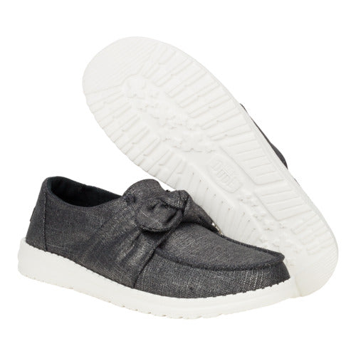You are the belle of the ball in the Wendy Bow Shimmer. This dazzling new go-to combines a playful fixed bow with a head-turning metallic shimmer upper. making every step shine. While a fun. cow print EVA foam-filled removable insole cushions underfoot.